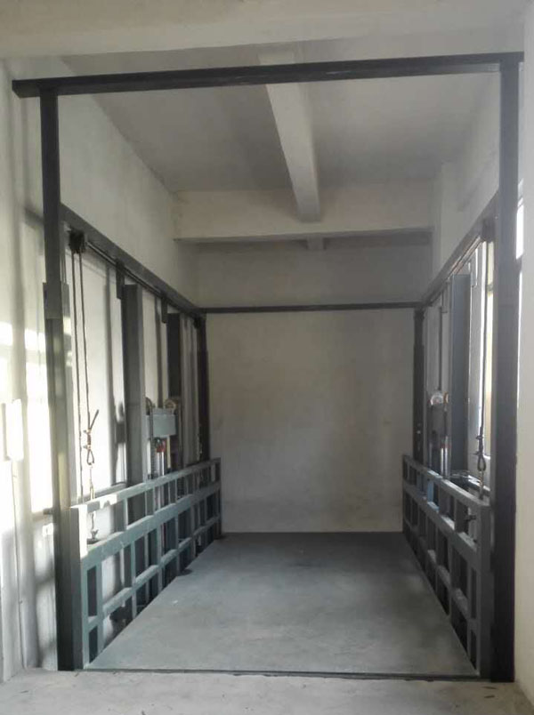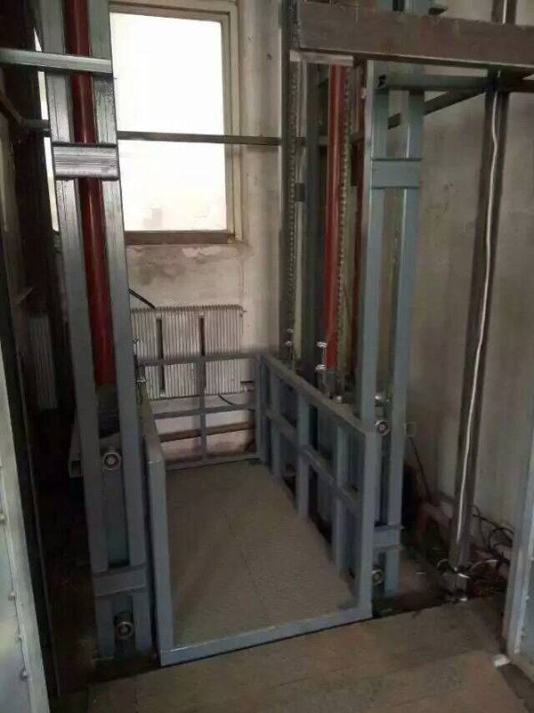 導軌式升降機是一種非剪叉式液壓升降機械設備·用于二三層工業(yè)廠房,餐廳,酒樓樓層間的貨物傳輸·高度在150-300mm,尤其適合不能開挖地坑的工作場所·并且無須上部吊點形式多樣化(單柱,雙柱,四柱).設備運行平穩(wěn),導軌式升降機的導軌一般為槽鋼、工字鋼,方管焊接制成,操作簡單可靠,貨物傳輸經(jīng)濟便捷。
